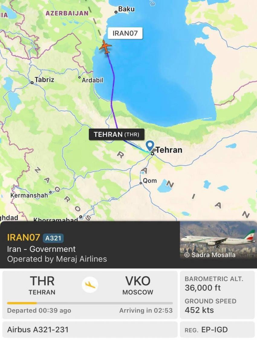 طائرة الرئيس الإيراني تقلع إلى موسكو في رحلة غير معلنة سابقًا طائرة الرئيس الإيراني تقلع إلى موسكو في رحلة غير معلنة سابقًا