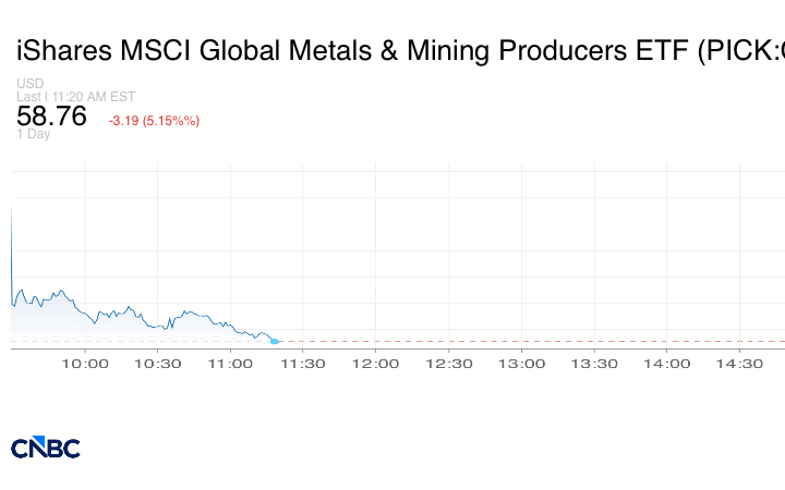 بينما انخفض مؤشر iShares MSCI Global Metals Mining Producers ETF بنسبة 4.3%.