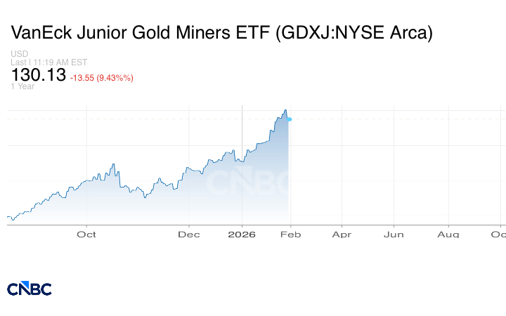 انخفض مؤشر VanEck Junior Gold Miners ETF بنسبة 8.4% في تداولات الجمعة.