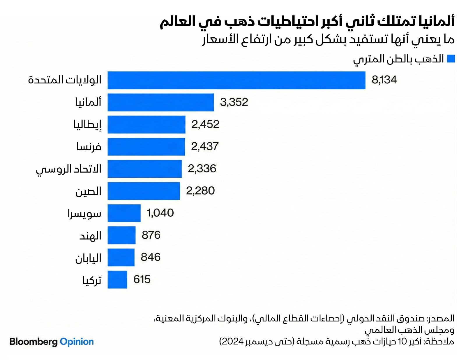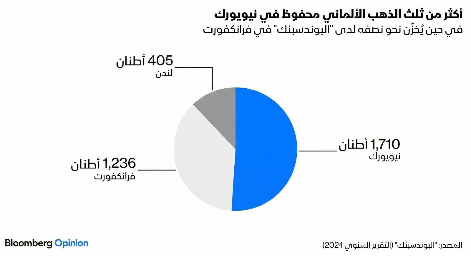 أسباب احتفاظ ألمانيا بالذهب في الوقت الراهن، لا توجد سوى أسباب عملية محدودة للاحتفاظ بهذا الحجم الكبير. بصفتها عضواً في منطقة اليورو، لم تعد لألمانيا عملتها الخاصة. مع ذلك، يحتفظ هذا المخزون الوطني بأهمية رمزية هائلة، والتفريط به لن يلقى قبولاً شعبياً. يقول هولغر شميتنغ، كبير الاقتصاديين في "بيرينبرغ" (Berenberg): "بيع جزء من الذهب تدريجياً عند هذه الأسعار المرتفعة للغاية لخفض الاقتراض الاتحادي سيكون منطقياً تماماً من الناحية الاقتصادية، لكنه سيكون خطيراً سياسياً. الألمان يحبون البوندسبنك كما هو".
