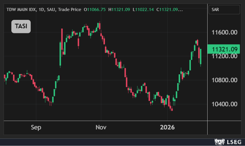 ارتفع مؤشر تاسي بنسبة 1.4% في جلسة الإثنين ليستعيد مستويات 11300 نقطة بعد تسجيله أمس الأحد أكبر انخفاض له في نحو 10 أشهر.