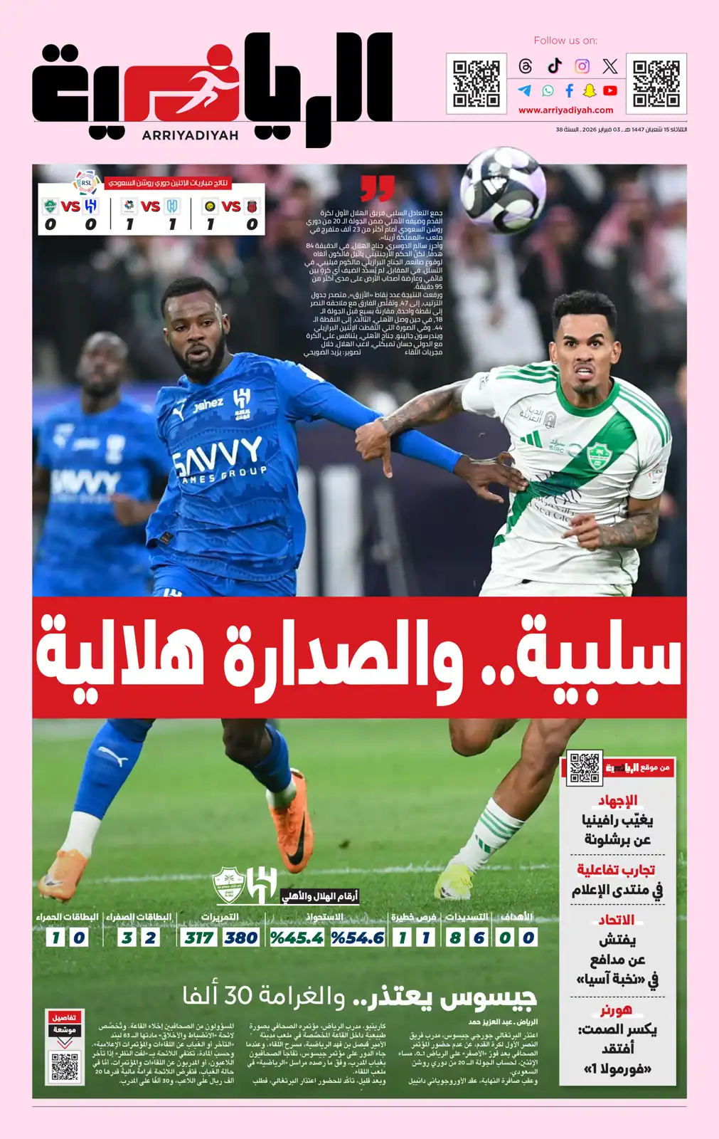 الصحيفة اهتمت بمباراة ألباسيتي وبرشلونة في ربع نهائي كأس ملك إسبانيا وكتبت:"تم تحذيرهم".