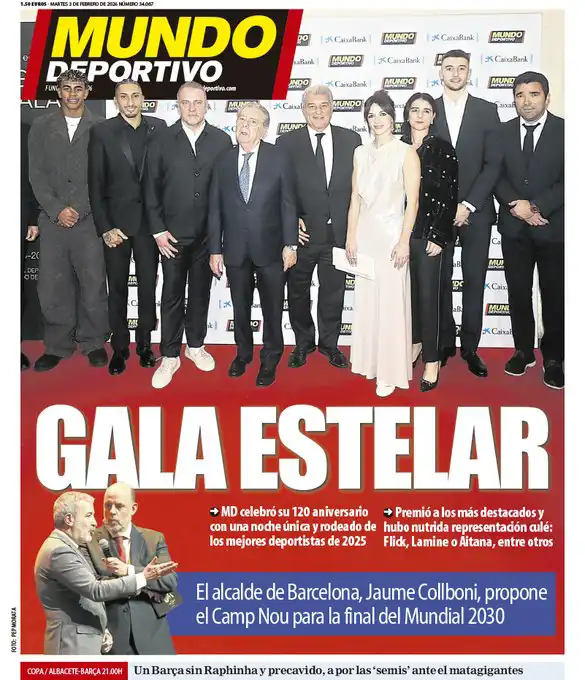 كما اهتمت الصحف بالإسباني كارلوس ألكاراز المتوج ببطولة أستراليا المفتوحة للتنس، وعودة المصابين لريال مدريد.