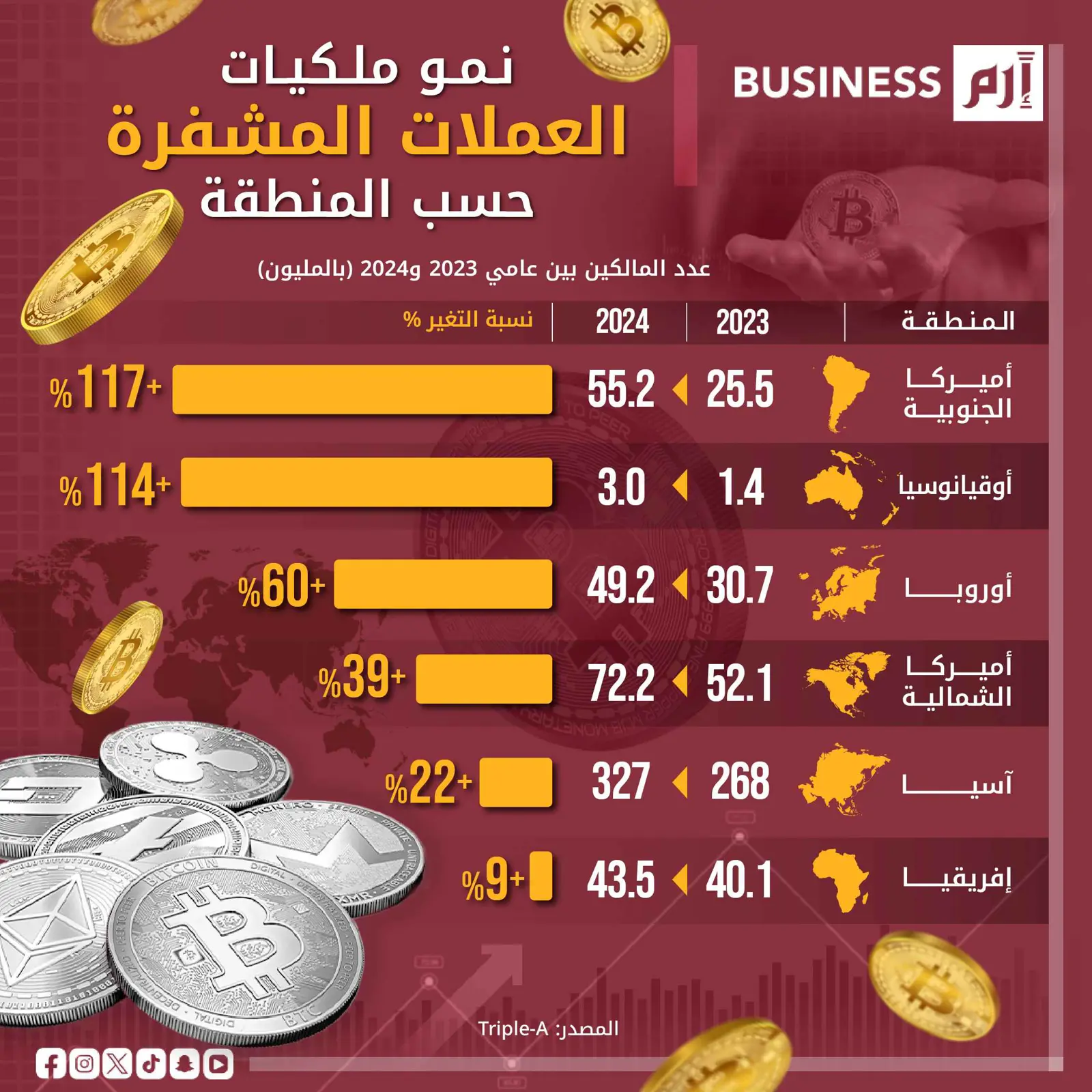 بيانات نمو ملكيات العملات المشفرة حسب (Triple-A)