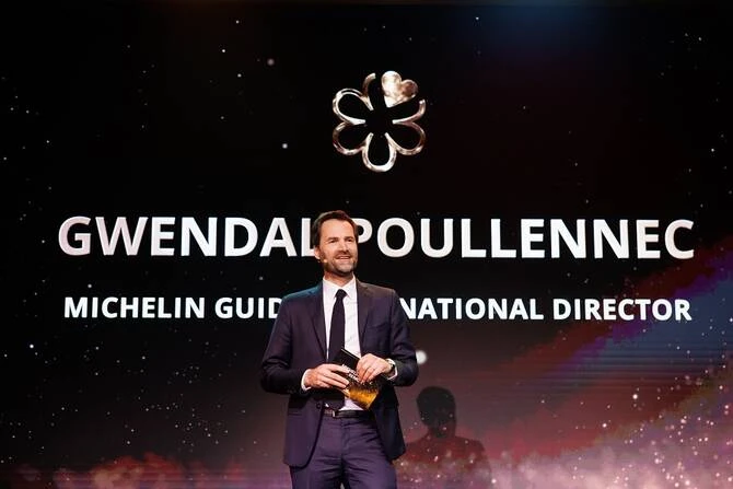 Gwendal Poullenne Michelin Guide Director Pilya s Kitchen Michelin Bib Gourmand plaque لتعرف أكثر عن المطاعم الـ11 الحائزة على جائزة بيب غورماند في السعودية،