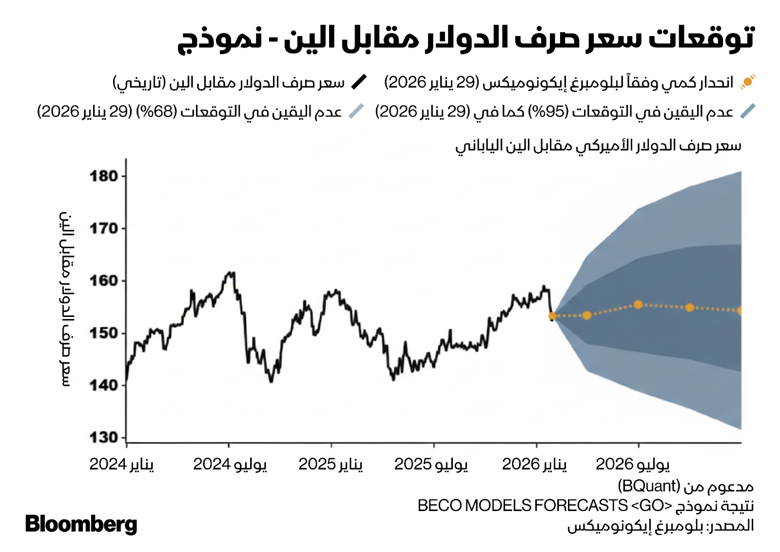 التوقع المركزي لسعر صرف الدولار مقابل الين في نهاية مارس هو 153، أي بزيادة.....