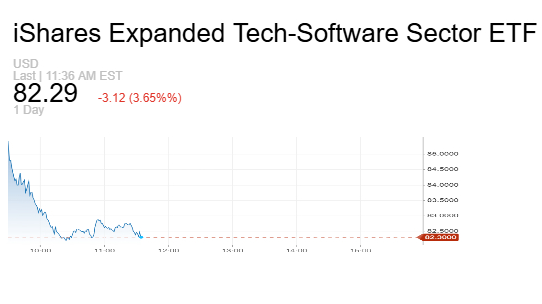 وهبط صندوق المؤشرات المتداولة لقطاع التكنولوجيا والبرمجيات الموسع "iShares Expanded Tech-Software Sector" بنسبة 3% خلال تداولات اليوم. وتصدرت شركات كبرى مثل "سيرفيس ناو" (ServiceNow) و"سيلز فورس" (Salesforce) قائمة الخسائر في قطاع البرمجيات، إذ تراجعت أسهمهما بنسبة 6% و5% على التوالي.