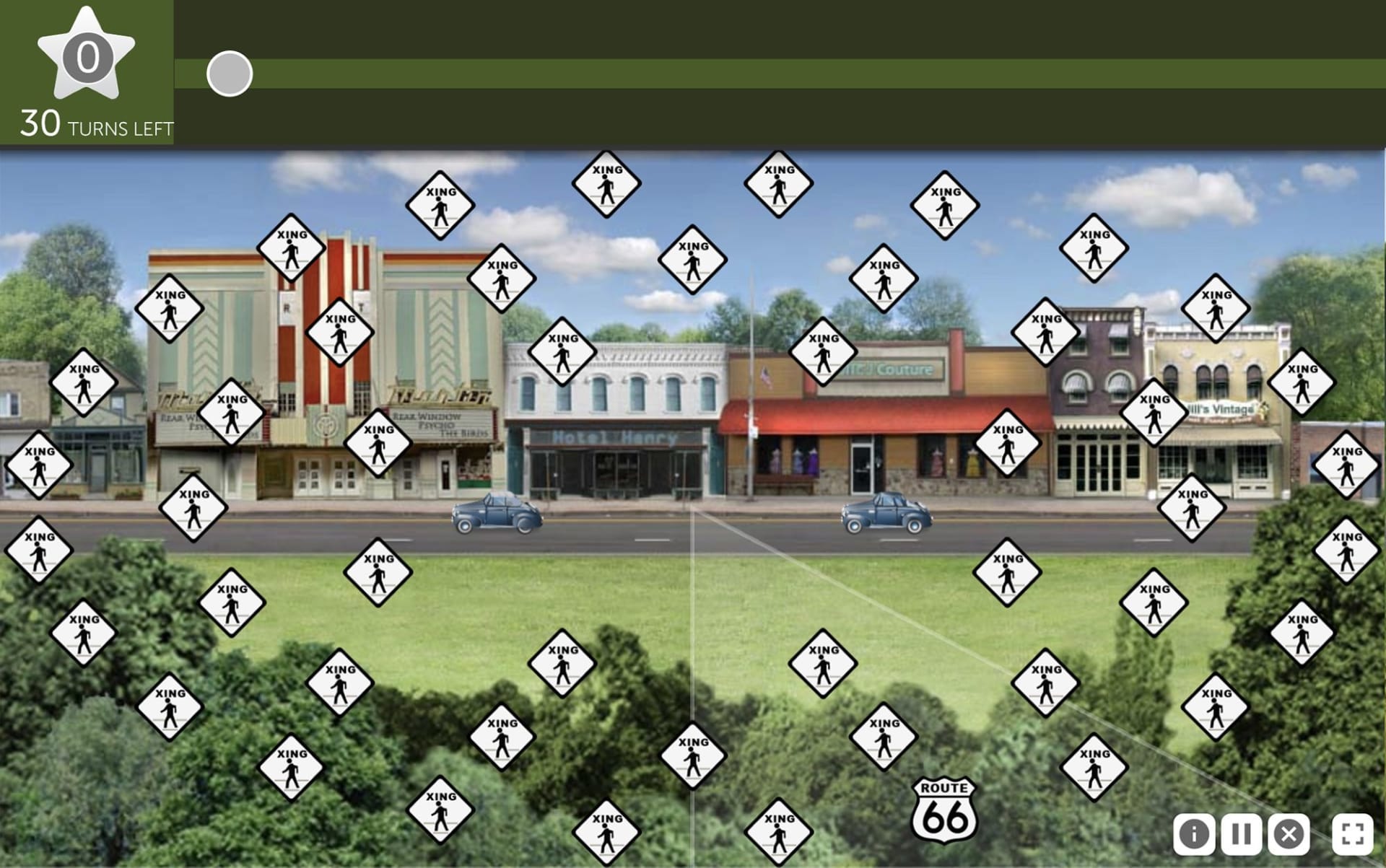 تعرض اللعبة على المستخدم مركبتين في بيئات مختلفة. بعد ذلك، تظهر لافتة طريق مكتوب عليها "Route 66" لفترة وجيزة على أطراف الشاشة، تحيط بها لافتات طريق أخرى مُشتِّتة للانتباه. لأداء التدريب بدقة، يجب على اللاعب النقر على السيارة الصحيحة، وكذلك تحديد موقع لافتة "Route 66". ومع تحسّن أداء اللاعبين، تختفي الصور بسرعة أكبر.