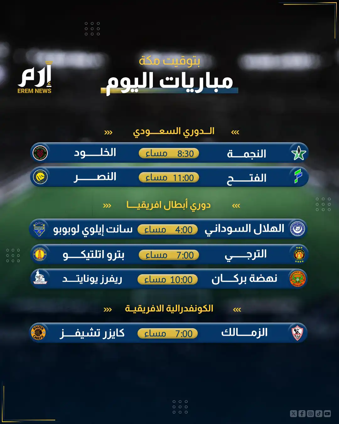 كما تلعب مباريات الحسم في الجولة السادسة من دوري أبطال إفريقيا، ويتصدرها لقاء الترجي التونسي وبيترو أتلتيكو في المجموعة الرابعة، ومباراة الهلال السوادني ولوبوبو الكونغولي.