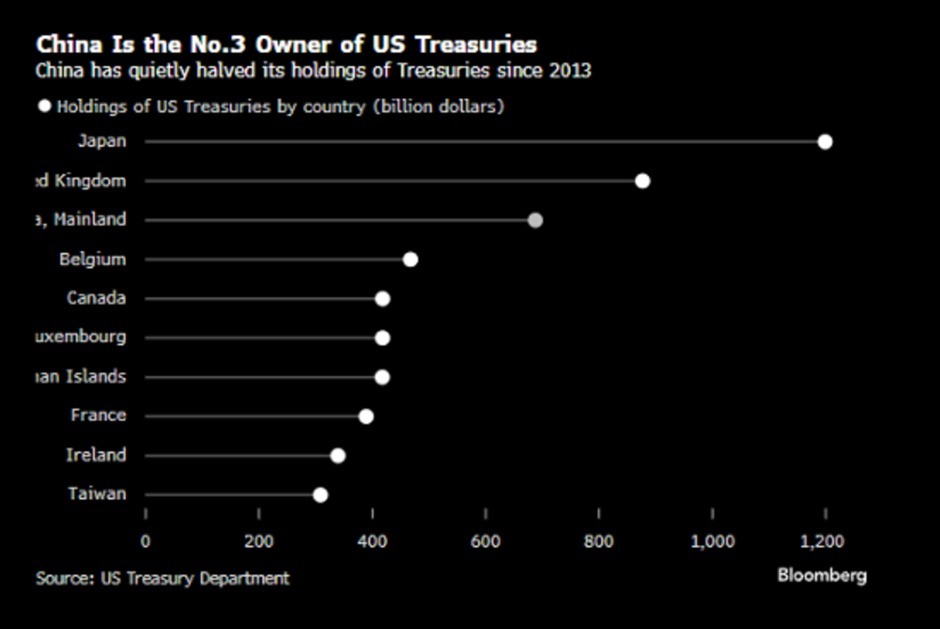 قلصت الحكومة الصينية حيازاتها بشكل مطرد خلال العقد الماضي، ورغم أنها لا تزال واحدة من أكبر المالكين الأجانب لسندات الخزانة الأميركية، فإن محفظتها تقلصت إلى نحو النصف منذ أن بلغت ذروتها في 2013، لتتراجع إلى 683 مليار دولار في نوفمبر، وهو أدنى مستوى منذ 2008.