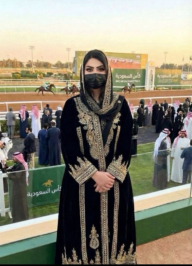 أيقونات التراث في مواجهة الخيول الأصيلة وفي مشهد لافت استوقف المصورين والجمهور على حد سواء، ظهرت داليا بنت فرحان، مدونة الأزياء التراثية المعروفة، وهي تخطف الأنظار بزي أسود فاخر يجسد التراث النجراني العريق، مرتدية البرقع التقليدي الذي أضاف غموضًا وسحرًا خاصين، وكأنها لوحة حية تمشي بين الحشود بكل ثقة وفخر.