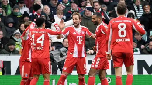 وبعد تسجيله هدفين في مرمى فيردر بريمن في الفوز (3-0) يوم السبت في الدوري الألماني، واصل مهاجم بايرن ميونخ، هاري كين هوايته التهديفية ووصل إلى هدفه السادس والعشرين في طريقه إلى التتويج بجائزة أفضل هدافي البوندسليغا للموسم الثالث تواليا.