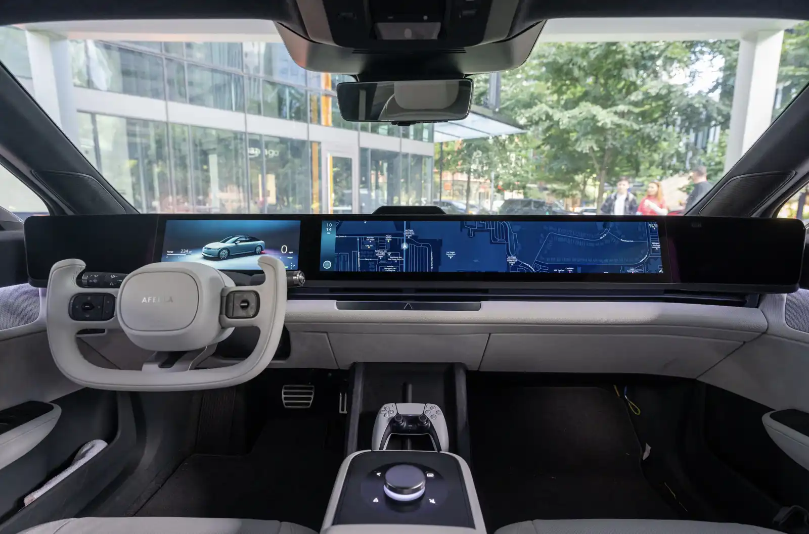 مقصورة قيادة سيارة "سوني أفيلا" الكهربائية والتي تعتمد على مقود Yoke غير الدائري حيث يلتقي التصميم الجريء مع شاشات رقمية ممتدة