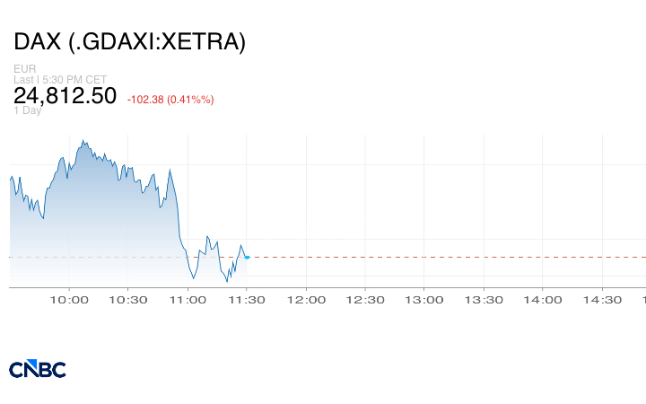 وانخفض مؤشر داكس الألماني بنسبة 0.4% ليصل إلى 24.812.50 نقطة.