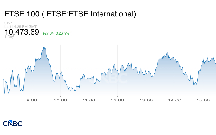 وفي لندن، صعد مؤشر فوتسي 100 بنسبة 0.26% إلى 10.473.69 نقطة.
