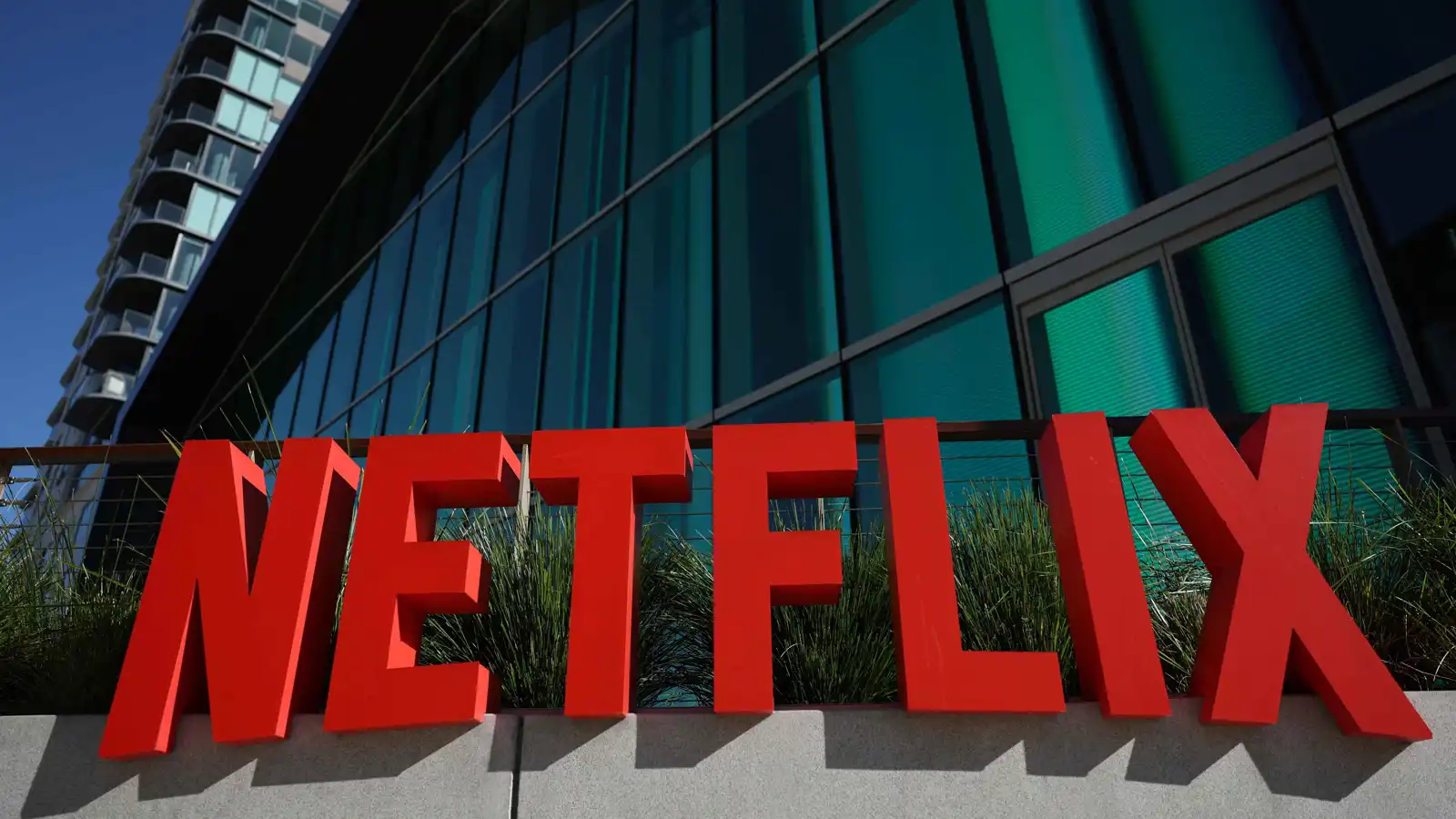 شعار «نتفليكس» أمام مكاتب الشركة في لوس أنجلوس، بولاية كاليفورنيا الأميركية، يوم 5 ديسمبر 2025.