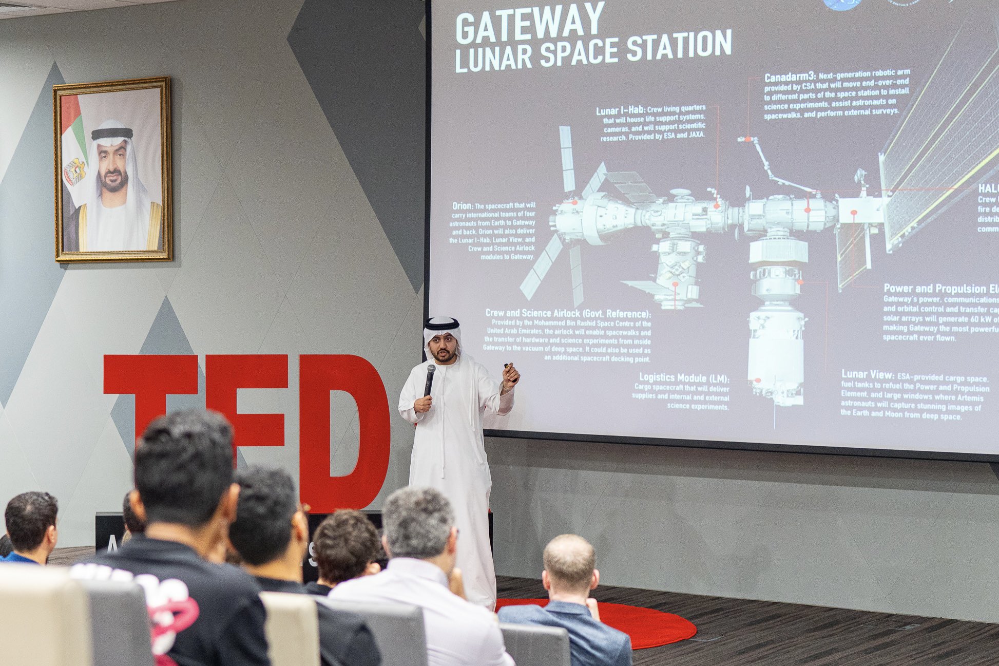 محمد السلامي، مسؤول العلاقات مع مركز جونسون للفضاء (ناسا) لشؤون مشروع محطة الفضاء القمرية، مركز محمد بن راشد للفضاء، شارك ضمن فعالية "تيد إكس" في الجامعة الأميركية في الشارقة، حيث شرح حول مشروع المحطة، وتطوير دولة الإمارات لوحدة معادلة الضغط "بوابة الإمارات" على متنها #صحيفة_الخليج