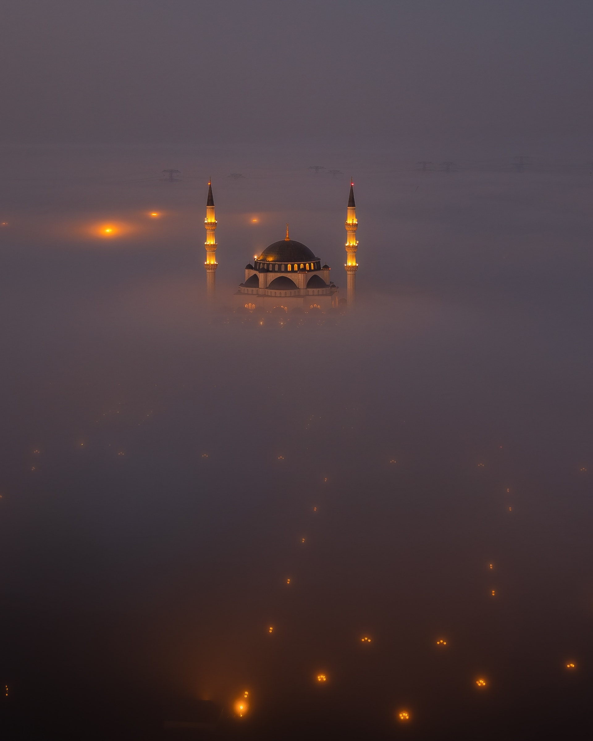 تمكّن المصور الإماراتي محمد المرزوقي من توثيق هذا المشهد الفريد لمسجد الشارقة، الذي يُعد الأكبر في الإمارة ومن بين أجمل مساجد دولة الإمارات، خلال الساعات الأولى من الصباح.