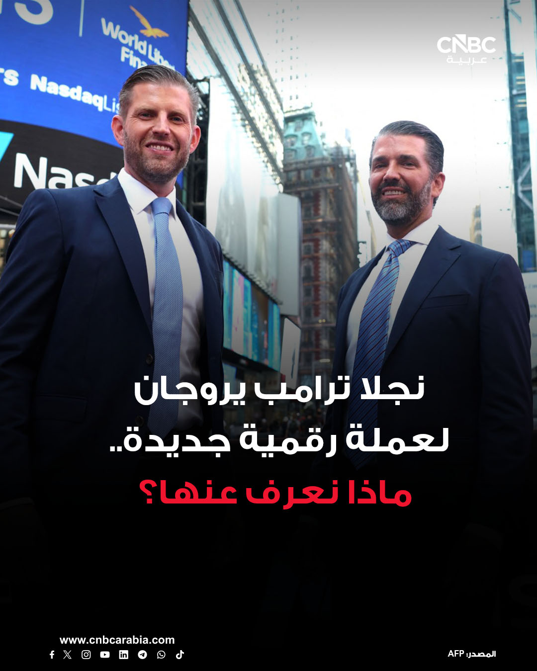 نجلا الرئيس الأميركي دونالد ترامب، دونالد ترامب جونيور وإريك ترامب، يروجان لمبادرة جديدة تهدف إلى "تحديث" الدولار الأميركي عبر عملة رقمية مستقرة تحمل اسم USD1، وذلك خلال منتدى "وورلد ليبرتي" الذي انعقد في مارالاغو مؤخراً. للمزيد