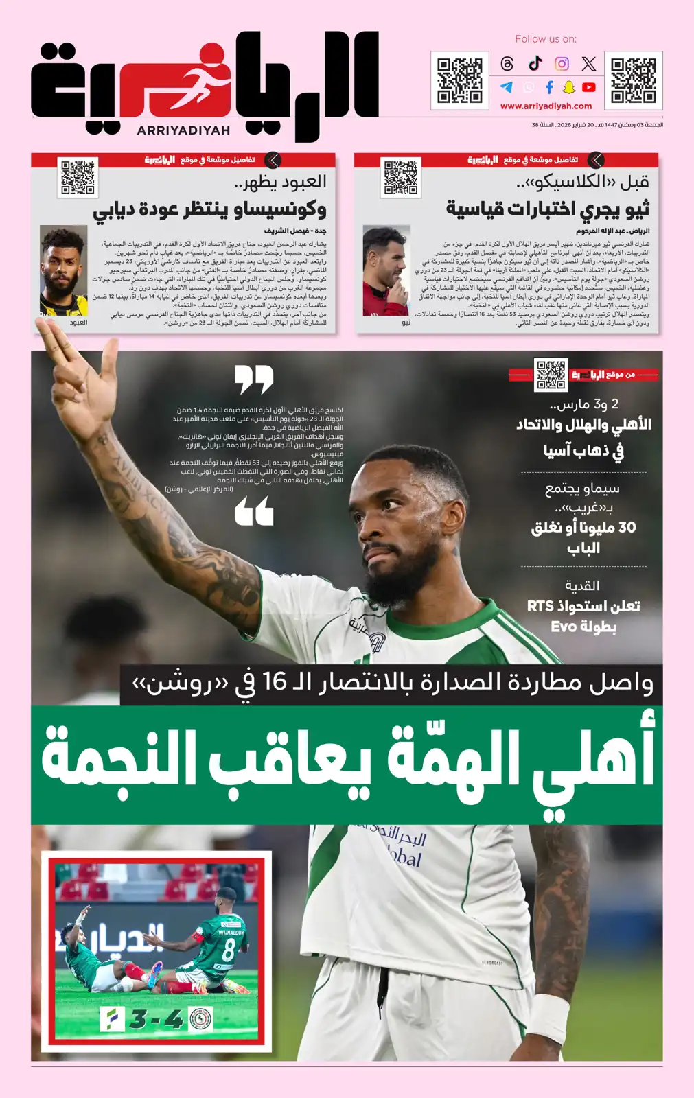 تصدرت تطورات أزمة اللاعب البرازيلي فينيسيوس جونيور نجم ريال مدريد الإسباني عناوين الصحف الرياضية الصادرة، اليوم الجمعة 20 فبراير 2026.