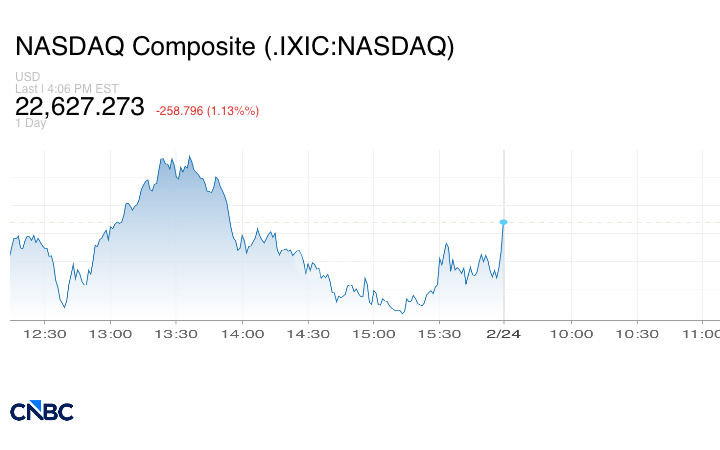 وتأثر مؤشر داو جونز، الذي يضم 30 سهماً، سلباً بانخفاض أسهم شركة IBM التي تراجعت بنسبة 13% عقب إعلان شركة أنثروبيك عن إمكانيات برمجية جديدة لمنتجها "كلاود كود".