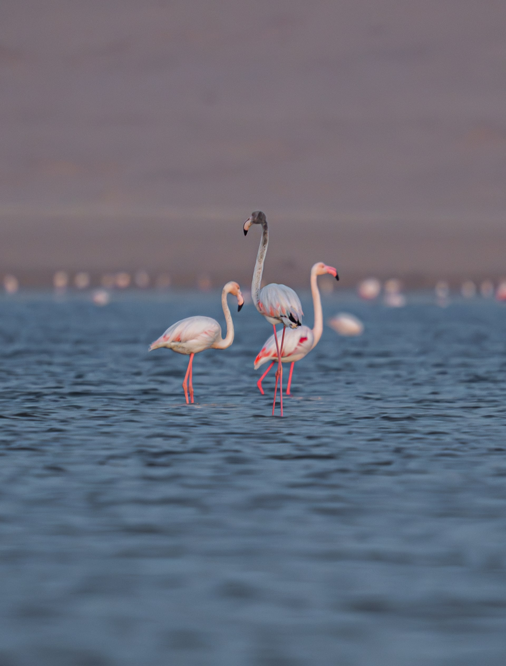 في مصر، وتحديدا ببحيرة قارون بمحافظة الفيوم، وثقت عدسة المصور المصري، أحمد عماد، مشاهد خلابة لطيور الفلامنجو، التي تُعرف باسم طيور النحام الوردي.