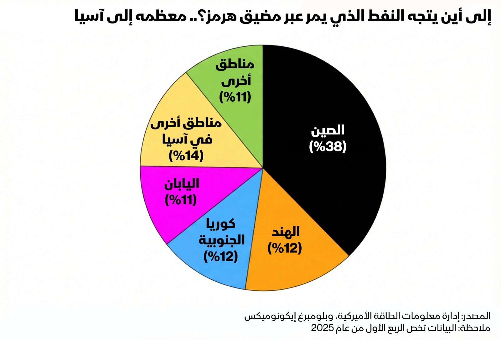 يمر عبر الممر المائي 20% من إجمالي النفط العالمي، ولا توجد مسارات بديلة يمكنها تعويض هذه التدفقات بشكل فعال.