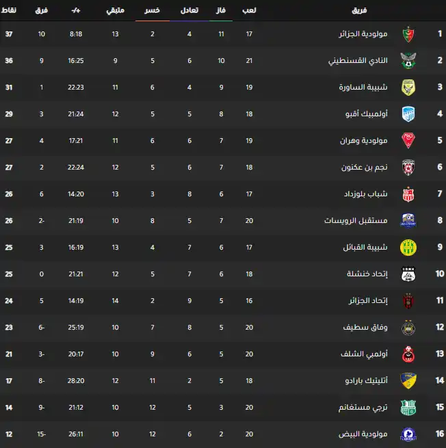 ترتيب الدوري الجزائري بعد تعادل شبيبة القبائل ومولودية الجزائر