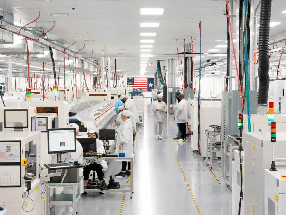 يقوم العمال في منشأة هيوستن بتجميع خوادم ذكاء اصطناعي متقدمة، لاستخدامها في مراكز بيانات أبل داخل الولايات المتحدة.