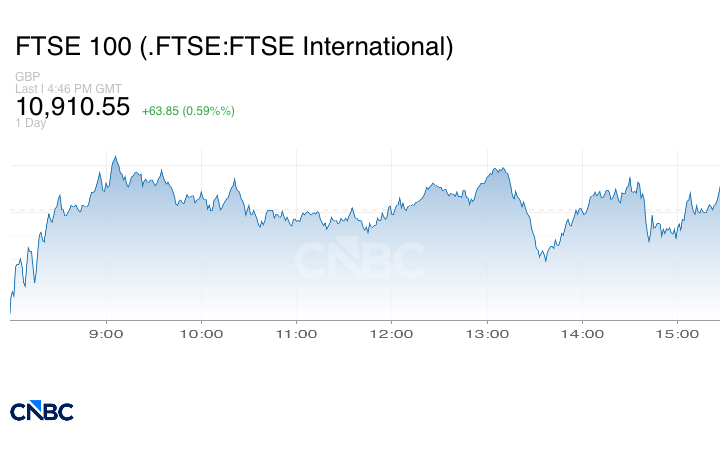 وكسب مؤشر فوتسي 100 البريطاني بنسبة 0.59%، ليصل إلى 10,910.55 نقطة.