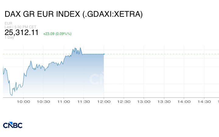 واستقر مؤشر داكس الألماني مرتفعاً بنسبة 0.09% مسجلاً 25,312.11 نقطة.