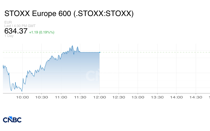 وزاد مؤشر ستوكس 600 الأوروبي الشامل بنسبة 0.19%، مختتماً الجلسة عند 634.37 نقطة.