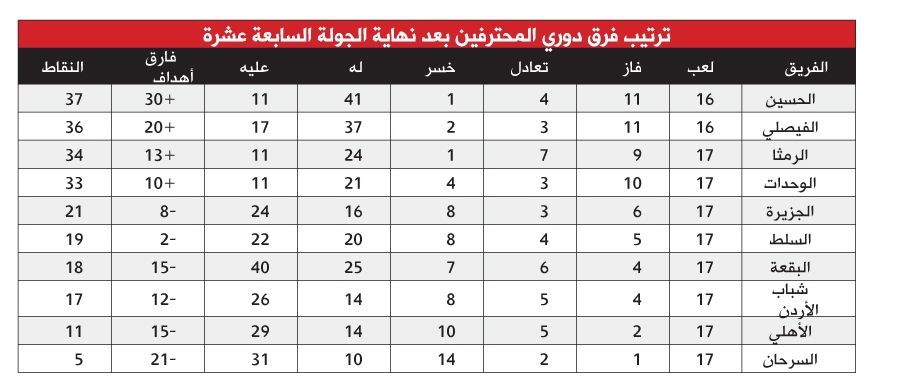 وفي المقابل، واصلت بقية فرق القمة تحقيق النقاط بعد أن سجل الحسين إربد فوزا كبيرا على نظيره البقعة، في ظل تألق نجمه عارف الحاج الذي سجل 4 أهداف- سوبر هاتريك - من أصل 5 سجلها فريقه في المواجهة، لتعد أفضل تحضير وبروفة للمواجهة الآسيوية.