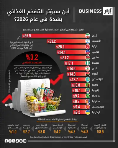 إيران الأكثر تضرراً عالمياً من تضخم أسعار المواد الغذائية في 2026
