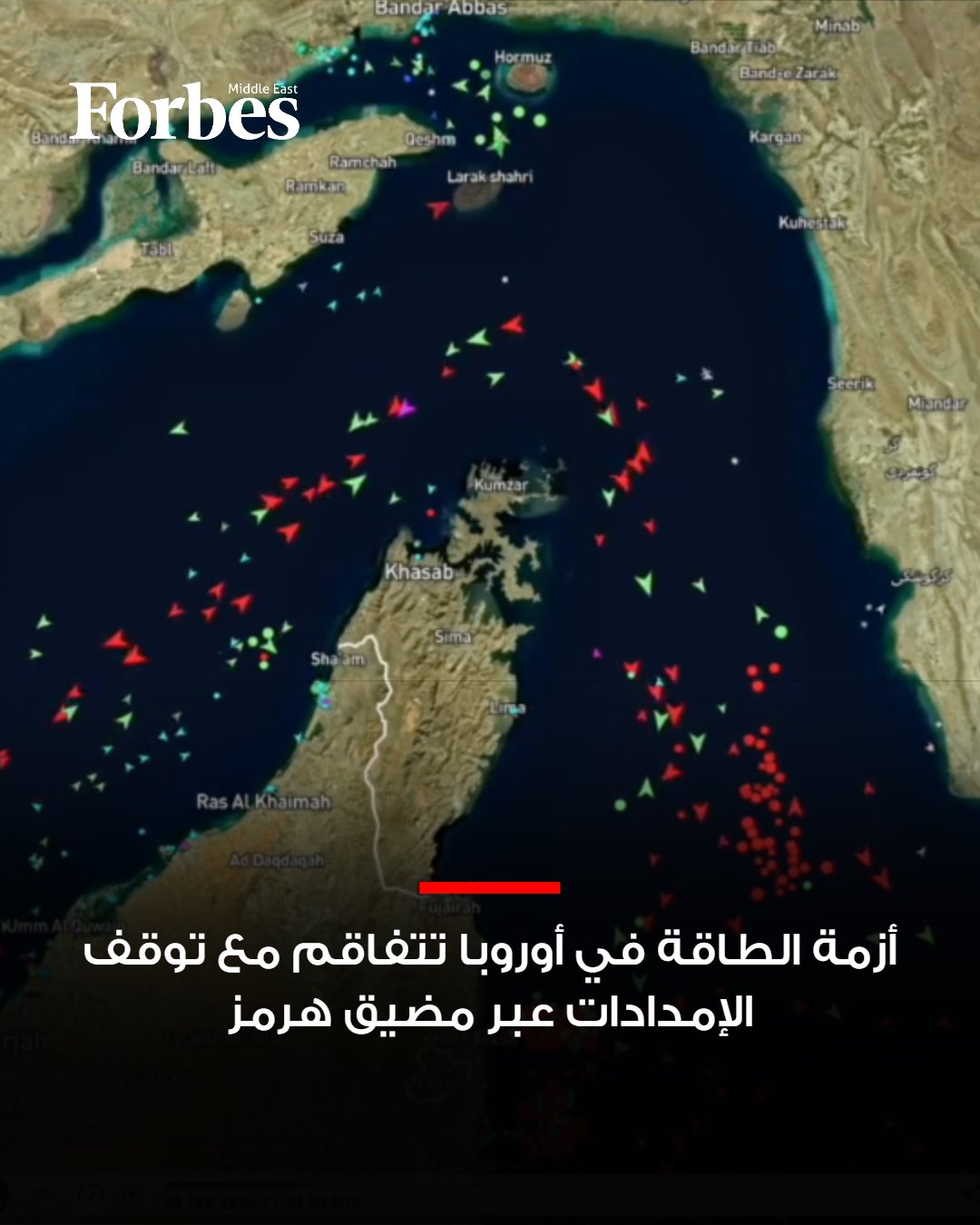 يُعد مضيق هرمز أحد أهم مسارات النفط والغاز في العالم، حيث يمر عبره نحو 20% من النفط الخام والغاز (LNG) عالميًا. وبعد انطلاق العمليات العسكرية وردود الفعل الإيرانية، تأثرت حركة السفن عبر هذا الممر الحيوي، ما قلل وصول شحنات النفط والغاز إلى الأسواق الأوروبية والآسيوية، وزاد من علاوة المخاطر على الأسعار العالمية.