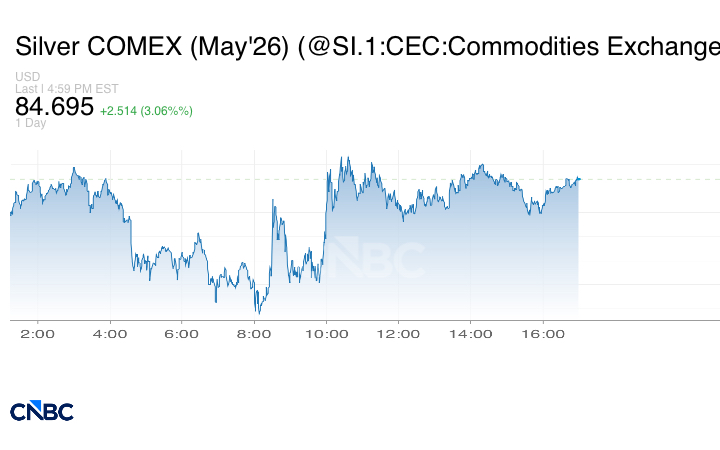 انخفضت الفضة بنسبة 9.63% خلال الأسبوع، مسجلةً أول انخفاض أسبوعي لها خلال أربعة أسابيع، لكنها أنهت تداولات يوم الجمعة مرتفعة بنسبة 2.59% عند 84.311.