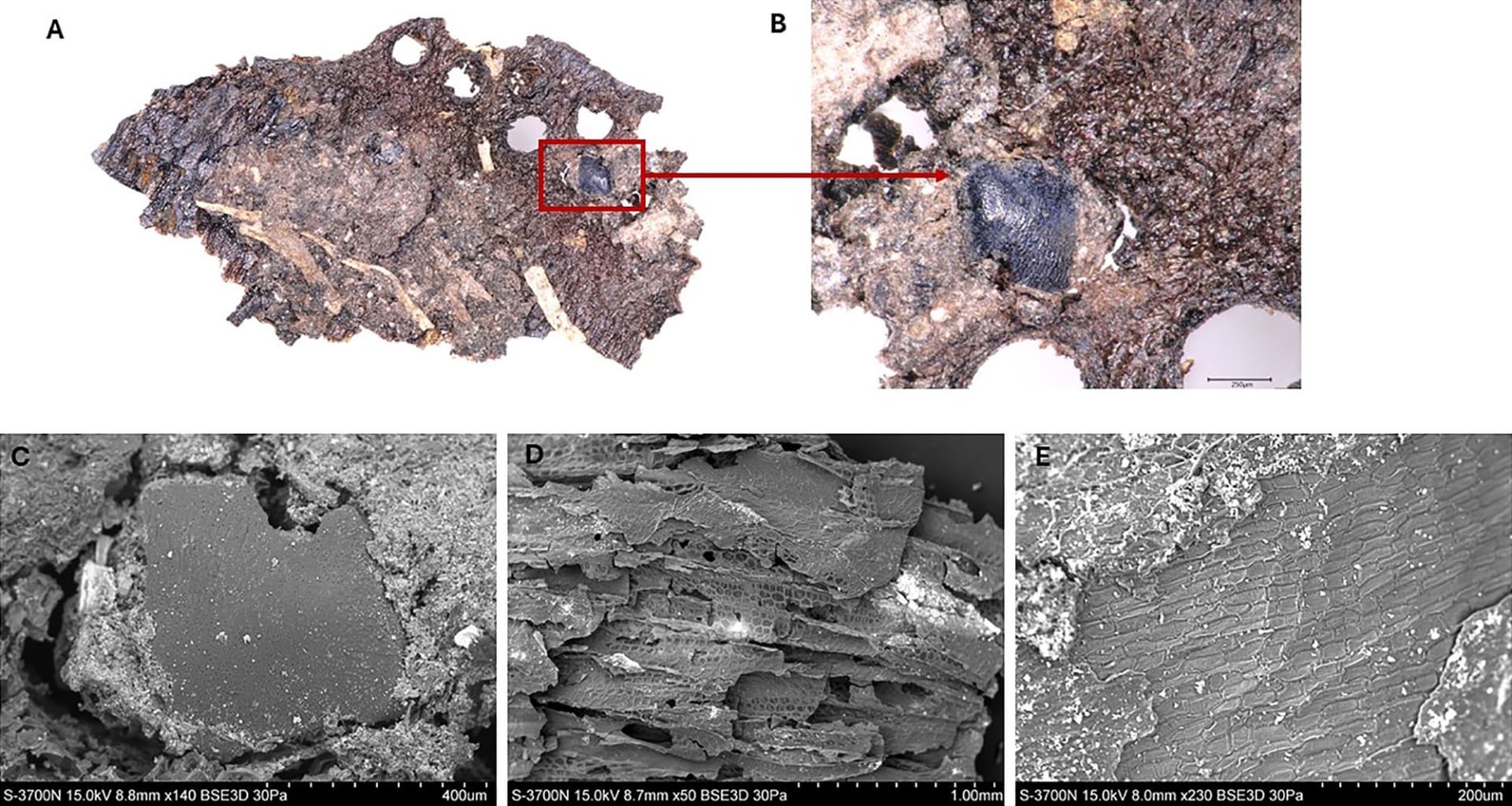 تم تحديد بقايا النباتات في قشور الطعام، إذ فحص الباحثون العينات المحفوظة جيدًا بالمجهر، حيث تمكنوا من التعرف إلى النباتات من هيكل خلايا كل منها.