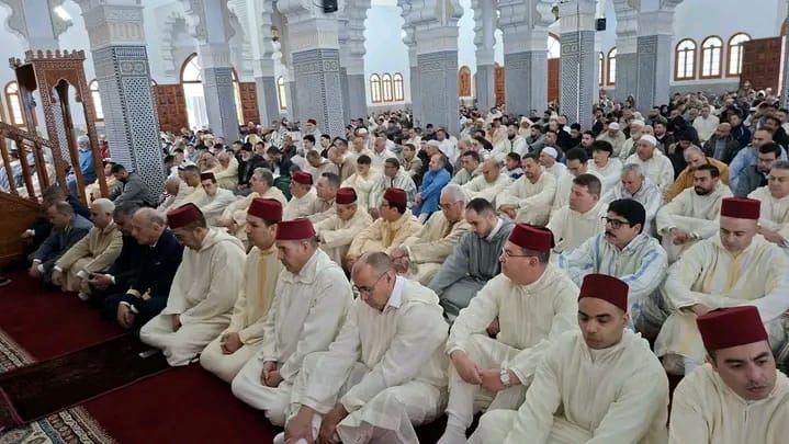 في أجواء روحانية مفعمة بالخشوع، أشرف عامل إقليم الحسيمة، صباح يوم الجمعة 20 مارس، على أداء صلاة عيد الفطر المبارك بمسجد محمد السادس بمدينة الحسيمة، بحضور شخصيات رسمية ومدنية، من ضمنها ممثلو السلطات المحلية والمصالح الخارجية، إضافة إلى عناصر من الأجهزة الأمنية والعسكرية، إلى جانب حشد كبير من المواطنين.