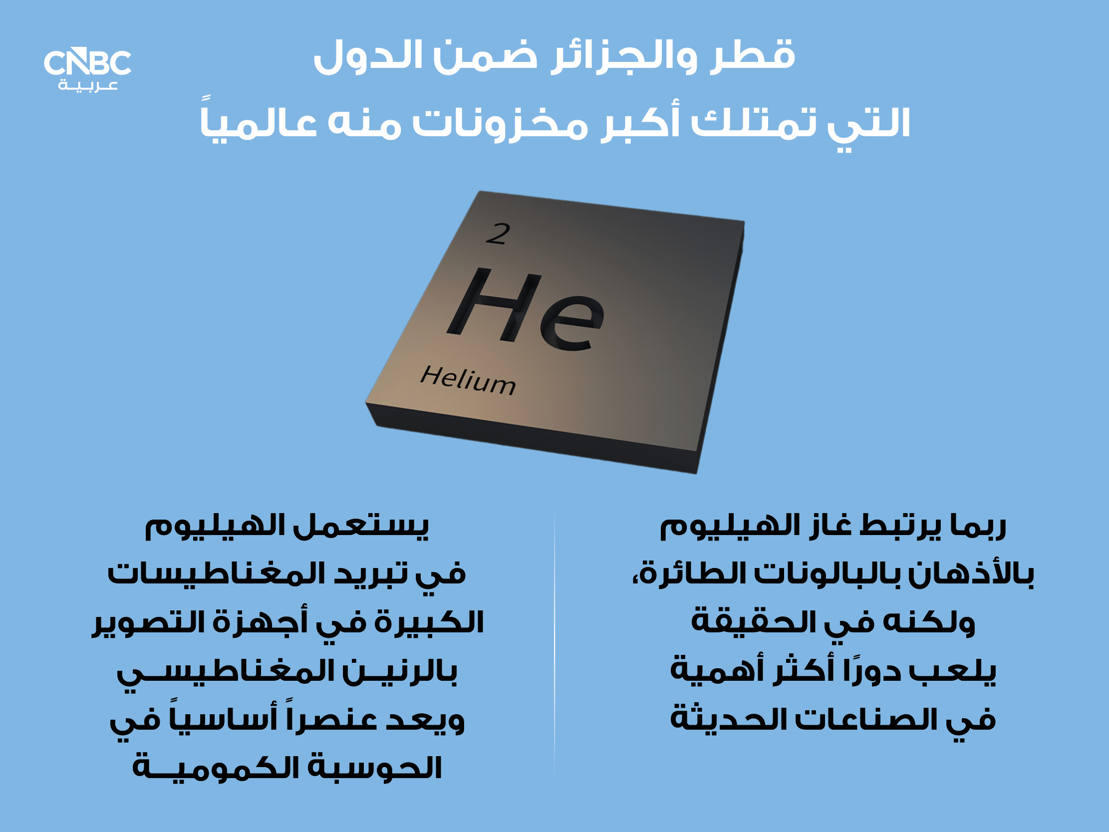 يُعدّ الهيليوم، وهو منتج ثانوي لإنتاج الغاز الطبيعي، عنصراً أساسياً في صناعة أشباه الموصلات، وقد تضررت قدرة قطر، ثاني أكبر مُصدّر للهيليوم في العالم، على التصدير جراء الهجمات الإيرانية، وفق تقرير لشبكة CNBC.