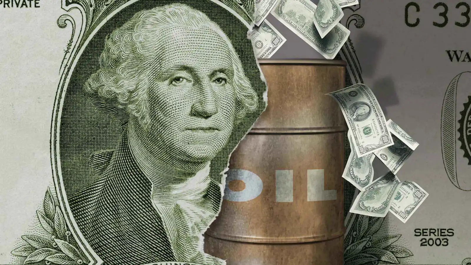 صورة تظهر برميل نفط وأوراقاً نقدية من الدولار الأميركي.