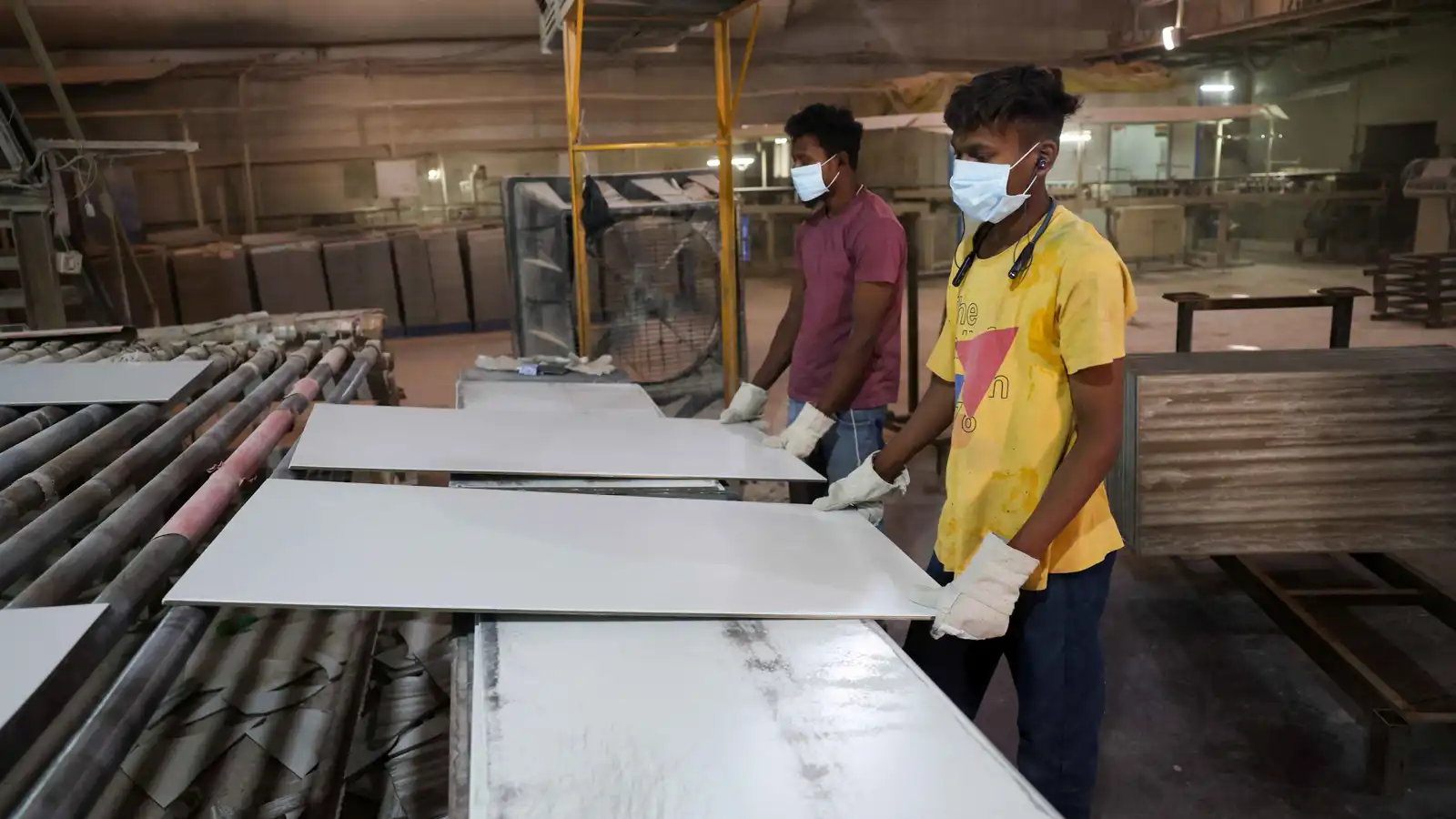 مصنع سيراميك بمدينة موربي في ولاية غوجارات، الهند، 5 مارس 2026.