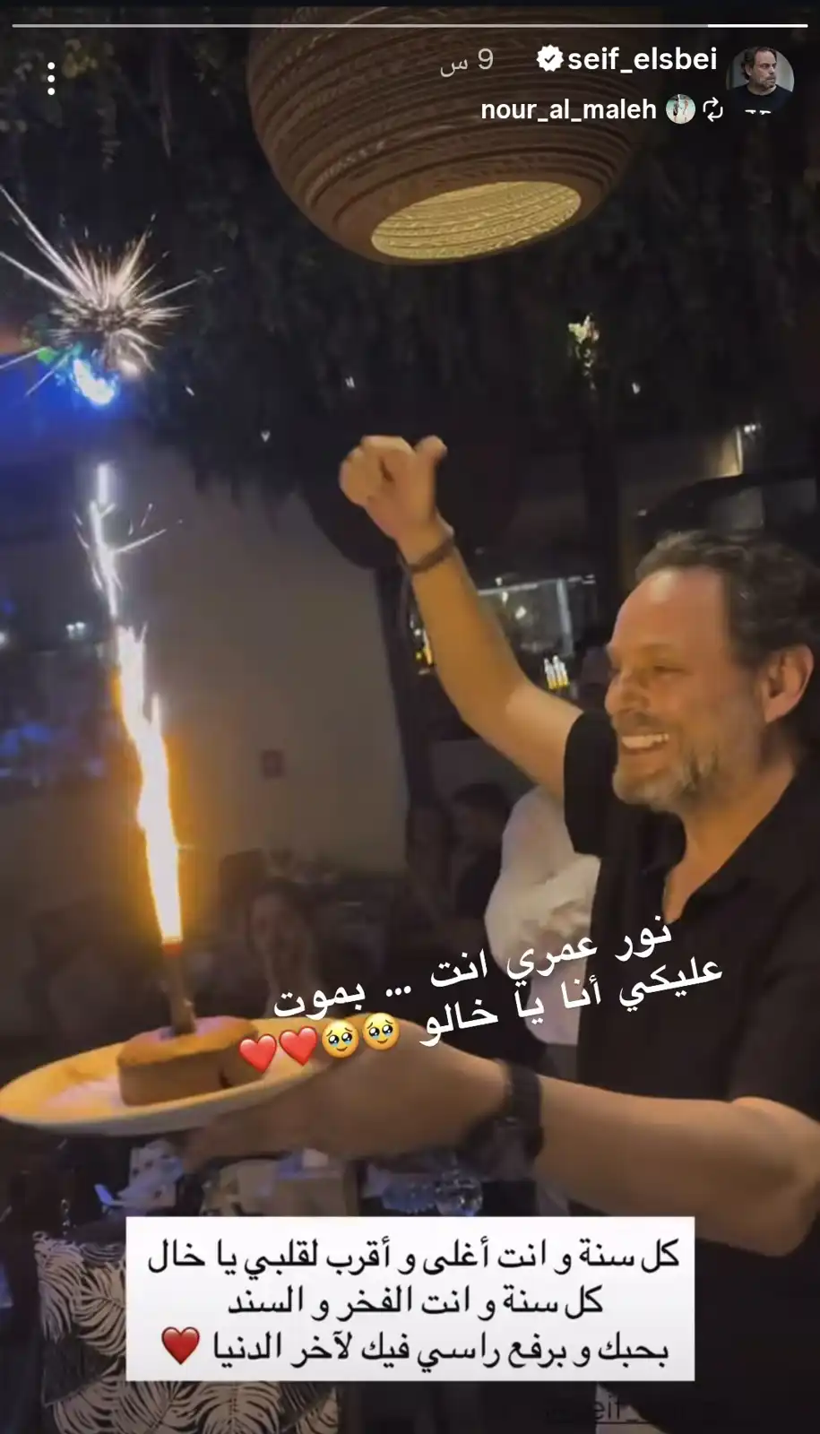 سيف سبيعي يوثق احتفال عيد ميلاده نشر المخرج سيف سبيعي، عبر خاصية الستوري في صفحته على "إنستغرام"، فيديو من احتفاله بعيد ميلاده، ظهر فيه يحمل.....
