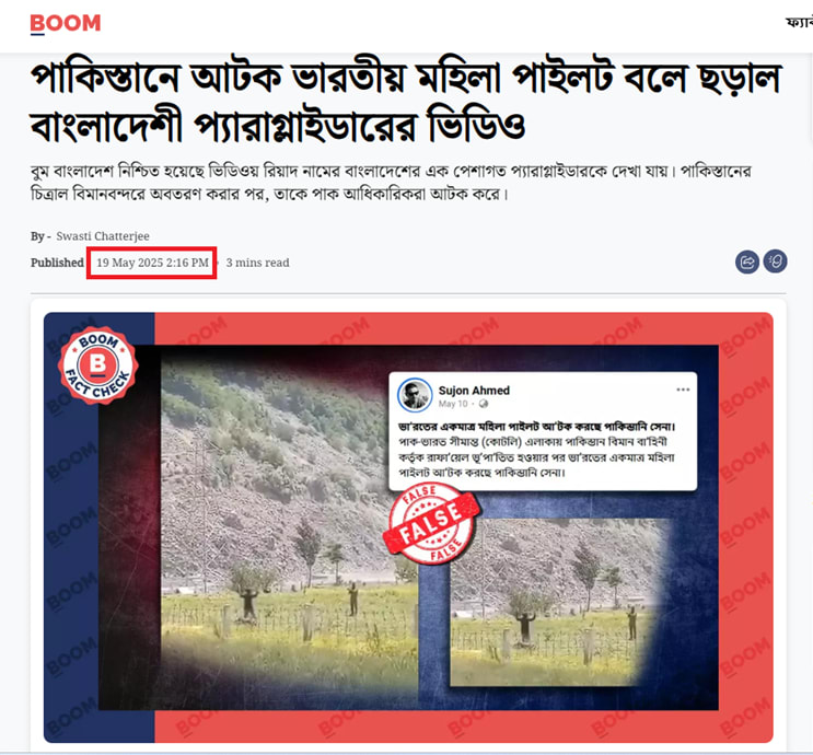 آنذاك، قدمت النسخة البنغلاديشية من موقع "BOOM" الهندي المتخصص في تدقيق الحقائق، رواية مختلفة لما حدث، وأفادت بأن الحادثة ترتبط بطيار شراعي من.....