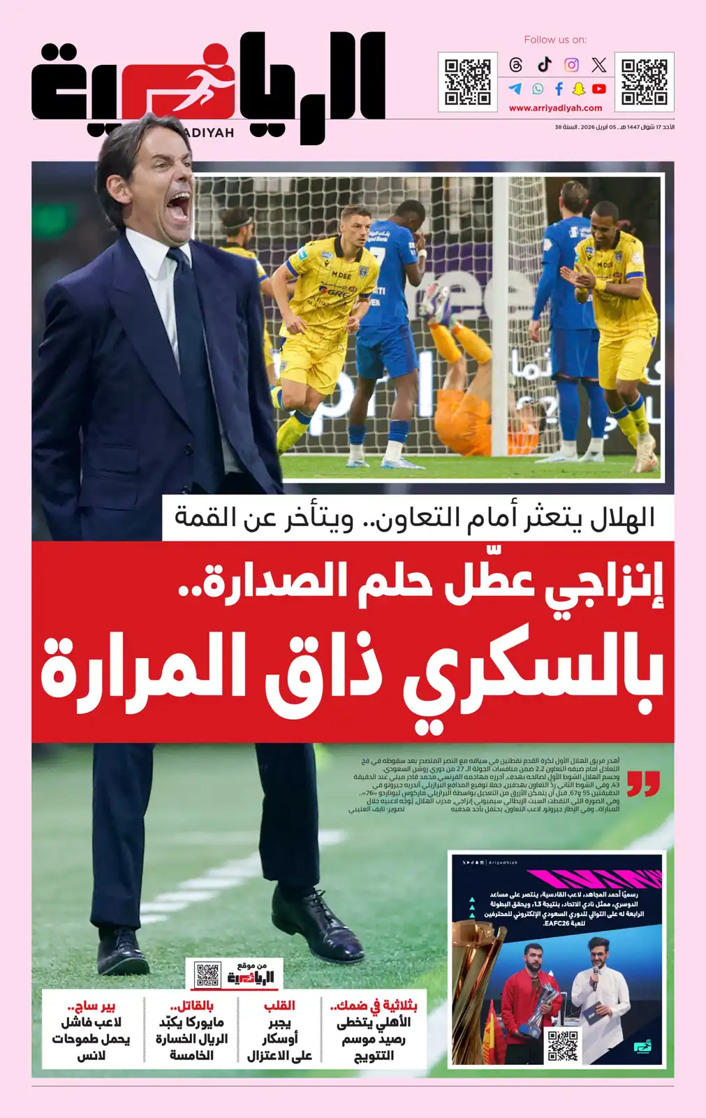 عناوين الصحف الرياضية: ريال مدريد يستسلم وبرشلونة يوسع الفارق والهلال يتعثر