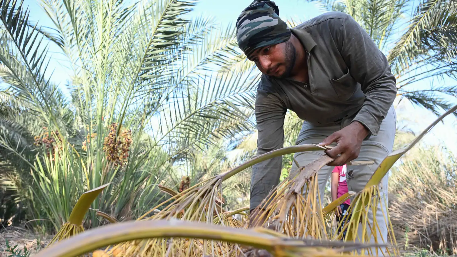 يبدأ موسم جني التمور مع ارتفاع درجات الحرارة في البصرة، العراق، حيث يباشر المزارعون حصاد محصولهم في الثاني من سبتمبر 2025.