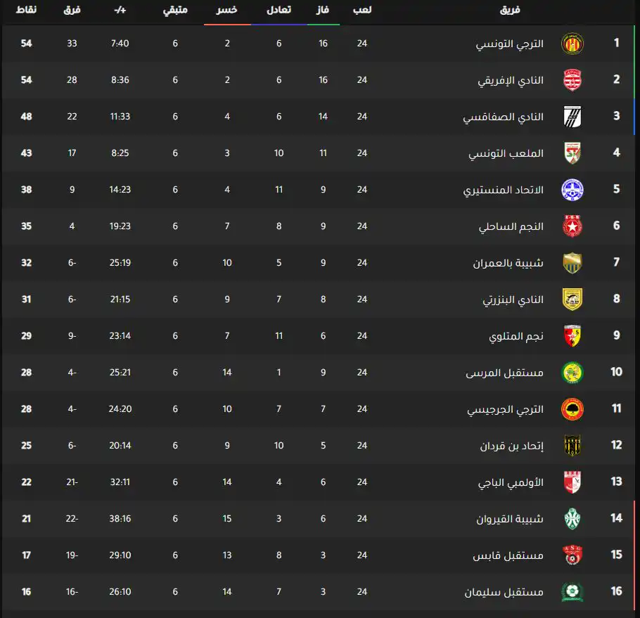 أشعل النادي الإفريقي، الصراع على صدارة ترتيب الدوري التونسي، بعدما حقق فوزًا مثيرًا على مستقبل قابس 0/2، مساء اليوم الأحد، مستفيدًا من تعادل الترجي والنجم الساحلي أمس.
