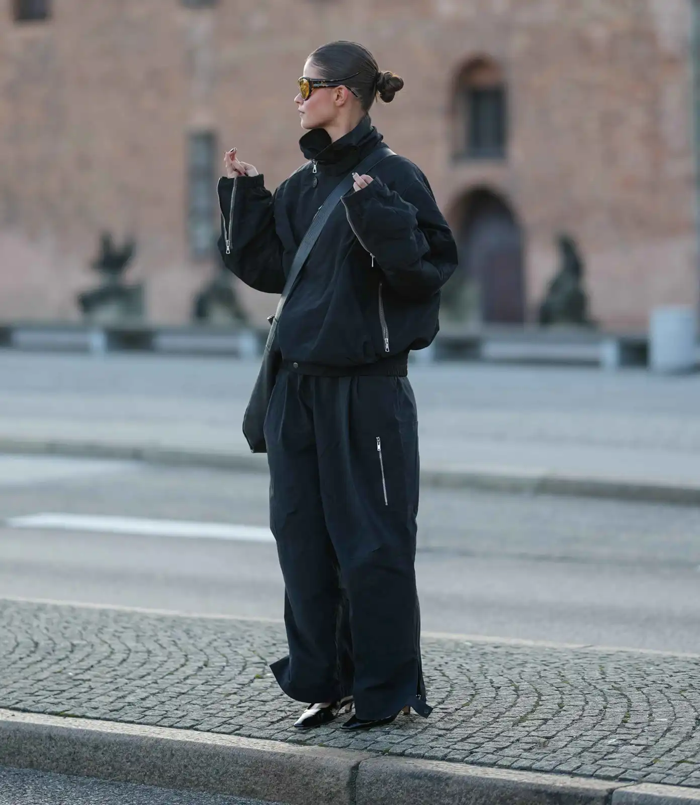 2- تراك سوت الشورت لإطلالة بلمسة أنثوية لإطلالة ستريت ستايل بطابع فخم ولمسة أنثوية ناعمة، اختاري تراك سوت مكوّناً من شورت وجاكيت بلون موحّد، ونسّقيه مع حذاء بكعب عالٍ بتصميم كلاسيكي بلون مستوحى من الإطلالة ليعزّز تناسقها. أضيفي طوق رأس بأسلوب التنس لإبراز الروح الرياضية، واختاري حقيبة صغيرة ناعمة تكمل اللوك بأسلوب أنيق ومتوازن.