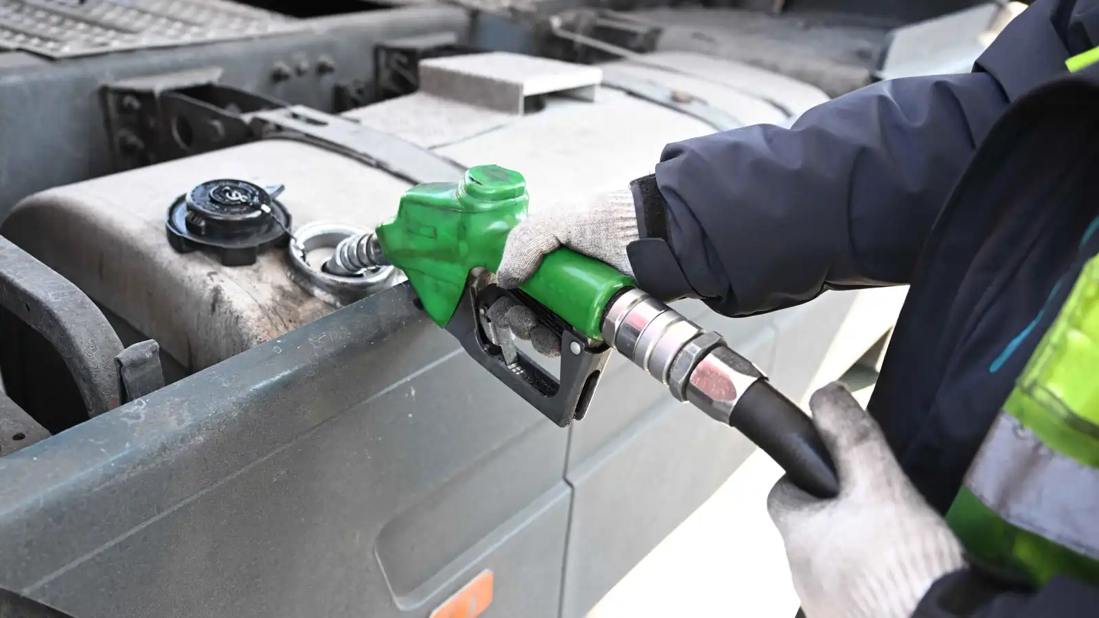رجل يملأ شاحنة بالوقود في محطة وقود تابعة لمستودع الحاويات الداخلية في مدينة أويوانغ، كوريا الجنوبية، يوم 13 مارس 2026.