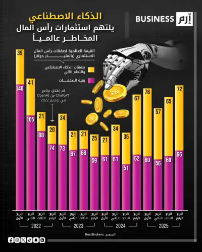 الذكاء الاصطناعي يستحوذ على أكثر من نصف استثمارات رأس المال الجريء