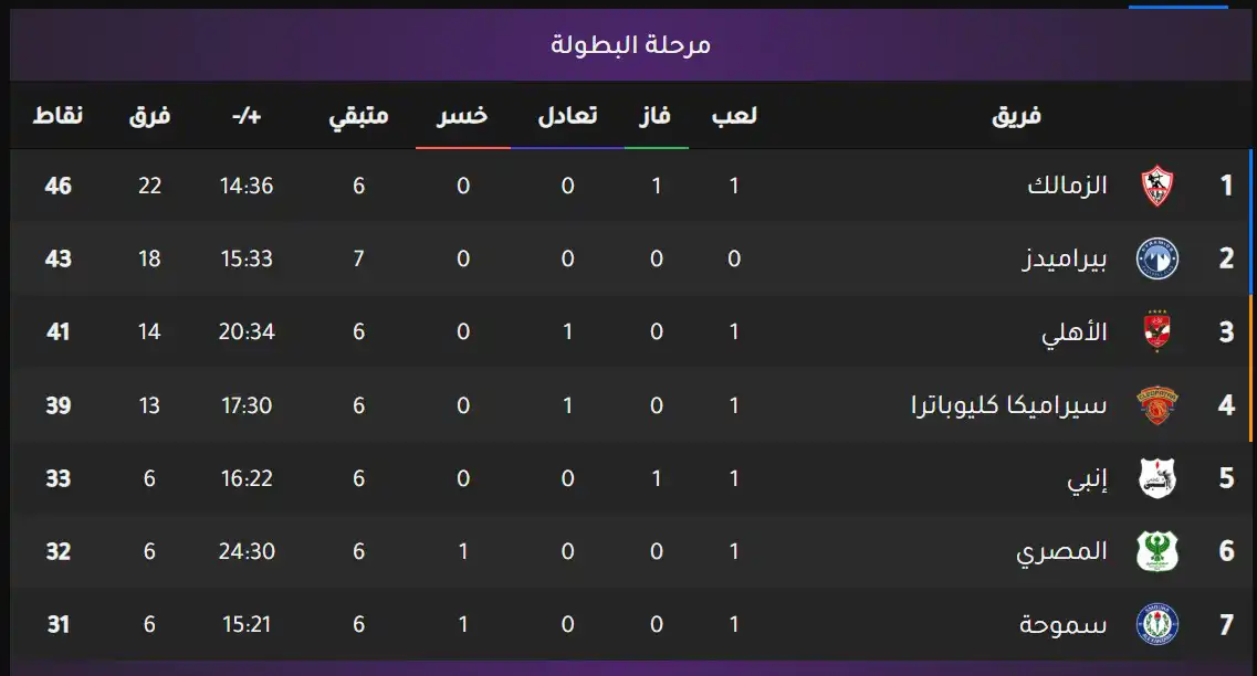 هدية للزمالك.. ترتيب الدوري المصري بعد تعادل الأهلي وسيراميكا